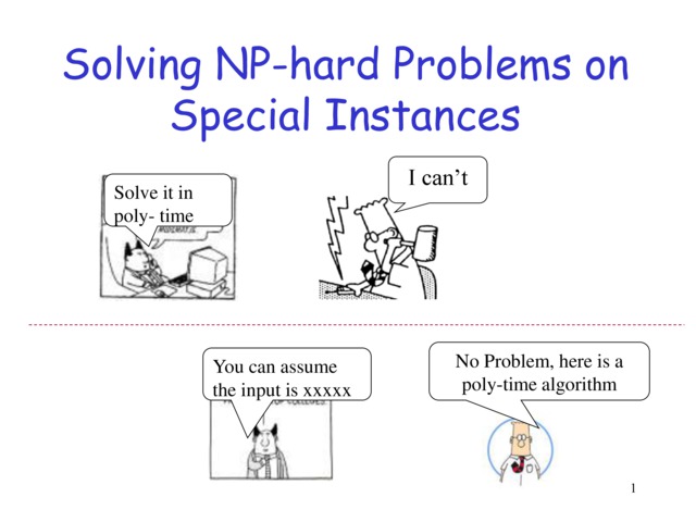 | We discuss problems that are NP-Hard, but can be solved efficiently if we assume the input is restricted in some way. Examples include minimum independent set on trees using greedy and dynamic programming algorithms, the partition problem on powers of two, facility location problems on trees, and maximum independent set on interval graphs. |
