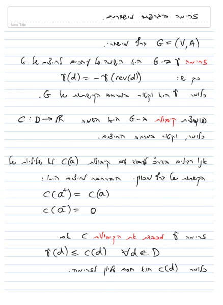 | We start our treatment of flow in planar graphs by relating circulations in the primal graph with face potentials in the planar dual. We show that the residual capacity of a dart with respect to a primal circulations is the slack cost of that dart in the dual with respect to the corresponding potential function. This establishes a connection between distances in the planar dual and capacity respecting circulations in the primal. We use this relation to give a linear-time algorithm for maximum st-flow when the source and sink lie on the same face. |